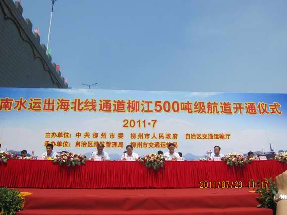 7月29日,由集團(tuán)直屬單位廣西交通規(guī)劃勘察設(shè)計(jì)研究院承擔(dān)前期工作及勘察設(shè)計(jì)的柳江航道整治工程在柳州市南車渡碼頭舉行航道工程開通儀式,自治區(qū)交通運(yùn)輸廳潘魏廳長、周一農(nóng)副廳長及柳州市政府鄭俊康市長、張永剛副市長等領(lǐng)導(dǎo)出席了開通儀式。