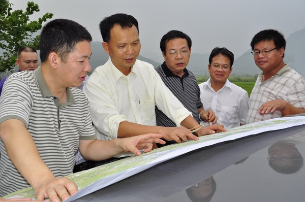 圖一:集團公司朱堅和董事長(右3)考察來賓至馬山、馬山至平果高速公路項目