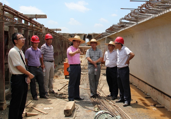 5月9日,集團(tuán)公司副總經(jīng)理劉明洪蒞臨廣西航務(wù)工程處崇左市工業(yè)區(qū)公路№2標(biāo)檢查指導(dǎo)工作。劉明洪副總經(jīng)理重點(diǎn)視察了路面水泥穩(wěn)定碎石底基層試驗(yàn)段的鋪設(shè)和橋梁預(yù)制場預(yù)制箱梁情況,參觀過程中聽取了項(xiàng)目施工情況匯報(bào),了解目前施工存在的困難,以及下一步的施工計(jì)劃部署情況。