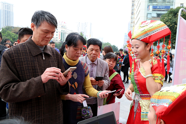 身著統(tǒng)一服裝,肩披綬帶、胸扣團(tuán)徽的ETC推廣青年突擊隊(duì)員向過往的行人宣傳ETC的相關(guān)知識,耐心解答車主朋友們的疑問,并現(xiàn)場演示ETC八桂行卡的安裝過程,使廣大社區(qū)市民對ETC有了一個初步的認(rèn)識。6名身著靚麗壯族服飾瞬間吸引住了往來市民的眼光,紛紛前來咨詢業(yè)務(wù)?;顒悠陂g,一卡通公司客服人員熱情地向社區(qū)居民發(fā)放了100張“桂民卡·體驗(yàn)卡”,亦有不少市民被桂民卡精美的版面設(shè)計(jì)和強(qiáng)大的互聯(lián)互通功能所吸引,紛紛在現(xiàn)場辦理購卡及充值業(yè)務(wù)。票通公司客服人員則向社區(qū)居民推介了廣西人自己的道路客運(yùn)網(wǎng)絡(luò)售票平臺——“桂客行”,耐心地向市民解析平臺功能、覆蓋范圍等,并協(xié)助市民下載“桂客行”手機(jī)APP。