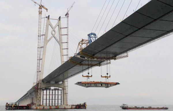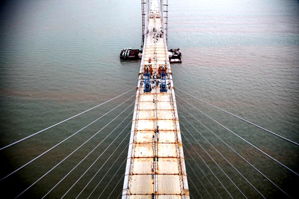 參建以來(lái),該公司抽調(diào)了精干的技術(shù)管理團(tuán)隊(duì)常駐大橋施工現(xiàn)場(chǎng),建立了高效的施工監(jiān)控組織機(jī)構(gòu)。技術(shù)人員在伶仃灣海面上連續(xù)晝夜備戰(zhàn),克服了海面風(fēng)浪大、海上工作平臺(tái)簡(jiǎn)陋等重重困難,攻克了橋梁節(jié)段吊裝溫差影響大、拼裝就位控制影響因素多等技術(shù)難題,為港珠澳大橋的順利施工提供了強(qiáng)有力的技術(shù)支撐。