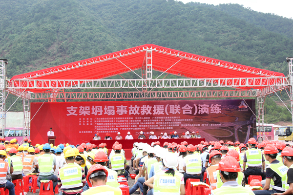 6月28日上午,由廣西新發(fā)展交通集團(tuán)、自治區(qū)交通工程質(zhì)量安全監(jiān)督站、賀州市人民政府聯(lián)合開展的支架坍塌事故應(yīng)急演練活動在鐘昭路一分部鐘山服務(wù)區(qū)施工現(xiàn)場舉行。演練效果逼真,更加貼近實戰(zhàn)。