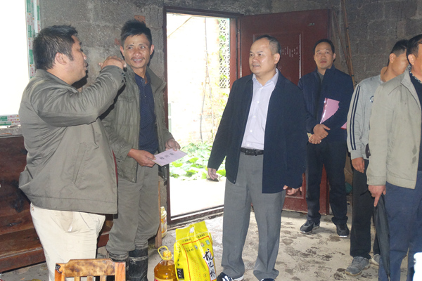 在樂業(yè)縣邏西鄉(xiāng),唐咸秋總經(jīng)理來到集團(tuán)公司扶貧聯(lián)系點(diǎn)中停村,開展走訪慰問、扶貧工作調(diào)研活動(dòng)。在與駐村第一書記、村兩委干部、村民代表、貧困戶代表座談時(shí),唐咸秋總經(jīng)理表示集團(tuán)公司將進(jìn)一步加大精準(zhǔn)幫扶工作力度,支持中停村集體經(jīng)濟(jì)發(fā)展,幫助改善群眾交通出行條件。扶貧要先扶志,駐村“第一書記”要在思想教育上加大幫扶力度。座談會(huì)后舉行了捐贈(zèng)儀式,唐咸秋同志代表集團(tuán)公司向中停村捐款3萬元,用于村集體經(jīng)濟(jì)(冰脆李種植基地)建設(shè)發(fā)展項(xiàng)目,并捐贈(zèng)了1臺(tái)打印機(jī),同時(shí)向貧困戶捐贈(zèng)慰問品和慰問金,給貧困村送去溫暖和關(guān)懷。