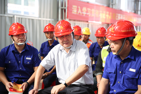 在作業(yè)一線,王躍飛主席結合企業(yè)實際情況,與現(xiàn)場員工及作業(yè)工人深入淺出的講解黨的十九大精神,讓黨的十九大精神在基層落地生根。王躍飛指出,黨的十九大對中華民族乃至每個老百姓的命運十分重要、關鍵,會議選舉出了以習近平總書記為核心的領導集體,確定了習近平新時代中國特色社會主義思想,確定了新的發(fā)展規(guī)劃。王躍飛表示,當前我國的奮斗目標是建設成為富強、民主、文明、和諧、美麗的社會主義現(xiàn)代化強國,我國的社會主要矛盾也已經(jīng)轉化為人民日益增長的美好生活需要和不平衡不充分的發(fā)展之間的矛盾,我們要對這些新論斷,新理念有清醒的認識。在宣講過程中,王躍飛用通俗易懂的語言對黨的十九大主要內容進行了精彩的講解。