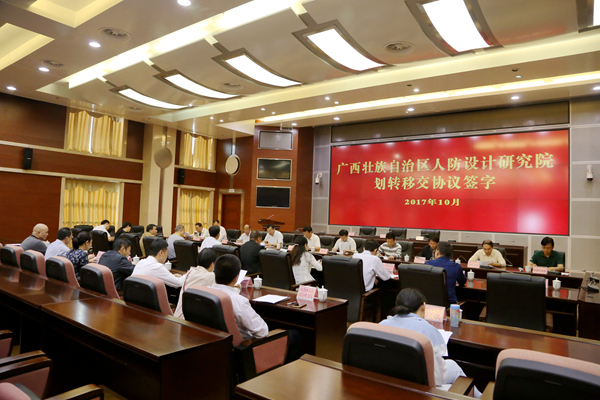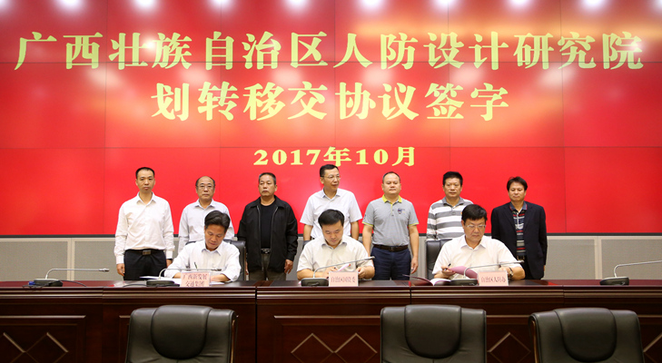 10月30日上午9時(shí),自治區(qū)國(guó)資委、自治區(qū)人防辦及廣西新發(fā)展交通集團(tuán)有限公司在自治區(qū)人防辦應(yīng)急指揮中心舉行廣西壯族自治區(qū)人防設(shè)計(jì)研究院劃轉(zhuǎn)移交協(xié)議簽字儀式,標(biāo)志著自治區(qū)人防設(shè)計(jì)院正式與自治區(qū)人防辦脫鉤,成建制劃轉(zhuǎn)移交新發(fā)展集團(tuán)管理。集團(tuán)公司黨委書(shū)記、董事長(zhǎng)朱堅(jiān)和,黨委副書(shū)記、副董事長(zhǎng)、總經(jīng)理唐咸秋,黨委副書(shū)記、董事、工會(huì)主席張友坐及集團(tuán)公司辦公室、投資改革發(fā)展部、人力資源部、黨群工作部、法律事務(wù)部等部門(mén)主要負(fù)責(zé)人參加簽字儀式。