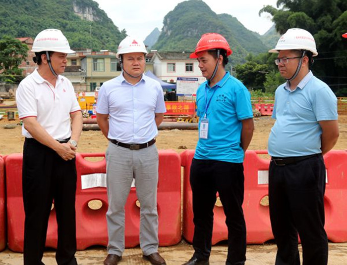在為期兩天的督查工作中,督察組一行沿著融河高速主線縱向便道深入到施工建設(shè)一線,重點(diǎn)對武陽江大橋、雙合隧道、羅城服務(wù)區(qū)、古毛大橋、小隘特大橋等關(guān)鍵控制性工程的建設(shè)進(jìn)展情況進(jìn)行實(shí)地調(diào)研督查,同時(shí)對指揮部、總經(jīng)理部及五個(gè)分部進(jìn)行質(zhì)量、安全內(nèi)業(yè)資料檢查。督察期間,唐咸秋與河池市政協(xié)副主席蘇志宏就融河高速沿線征拆工作、高壓桿線遷移等問題進(jìn)行了磋商,并與設(shè)計(jì)單位就相關(guān)設(shè)計(jì)問題進(jìn)行探討。