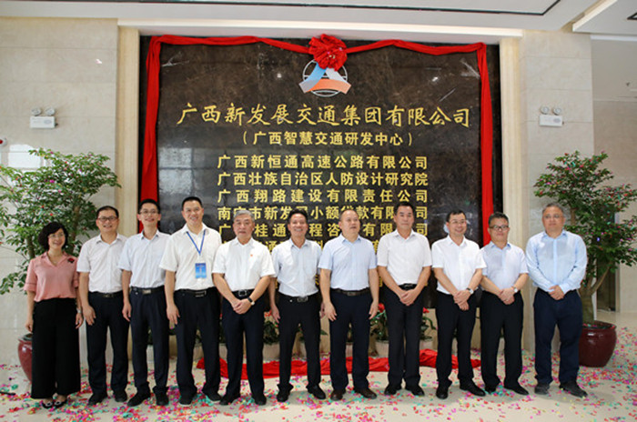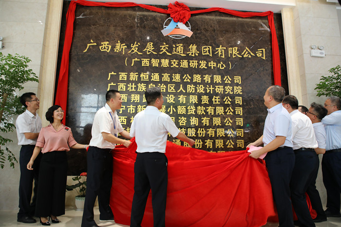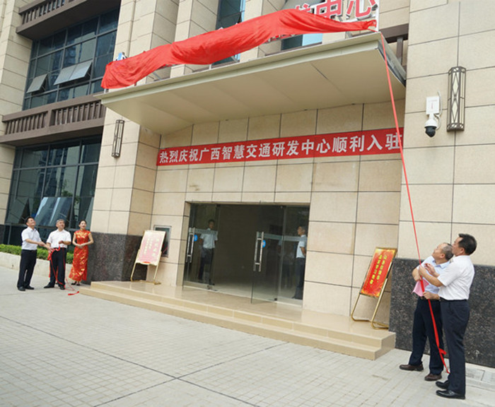 在喜慶熱烈的氣氛中,集團(tuán)公司領(lǐng)導(dǎo)朱堅和、唐咸秋、翁科、韋慶和共同為廣西智慧交通研發(fā)中心暨入駐單位揭牌。儀式結(jié)束后,領(lǐng)導(dǎo)合影留念,并參觀了新辦公樓。
