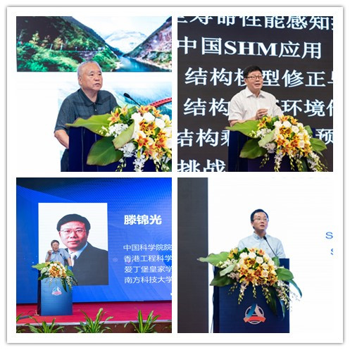 圖為鄭皆連院士(左上)、歐進(jìn)萍院士(右上)、滕錦光院士(左下)、YangWang(美國(guó))教授(右下)分享最新技術(shù)研究成果