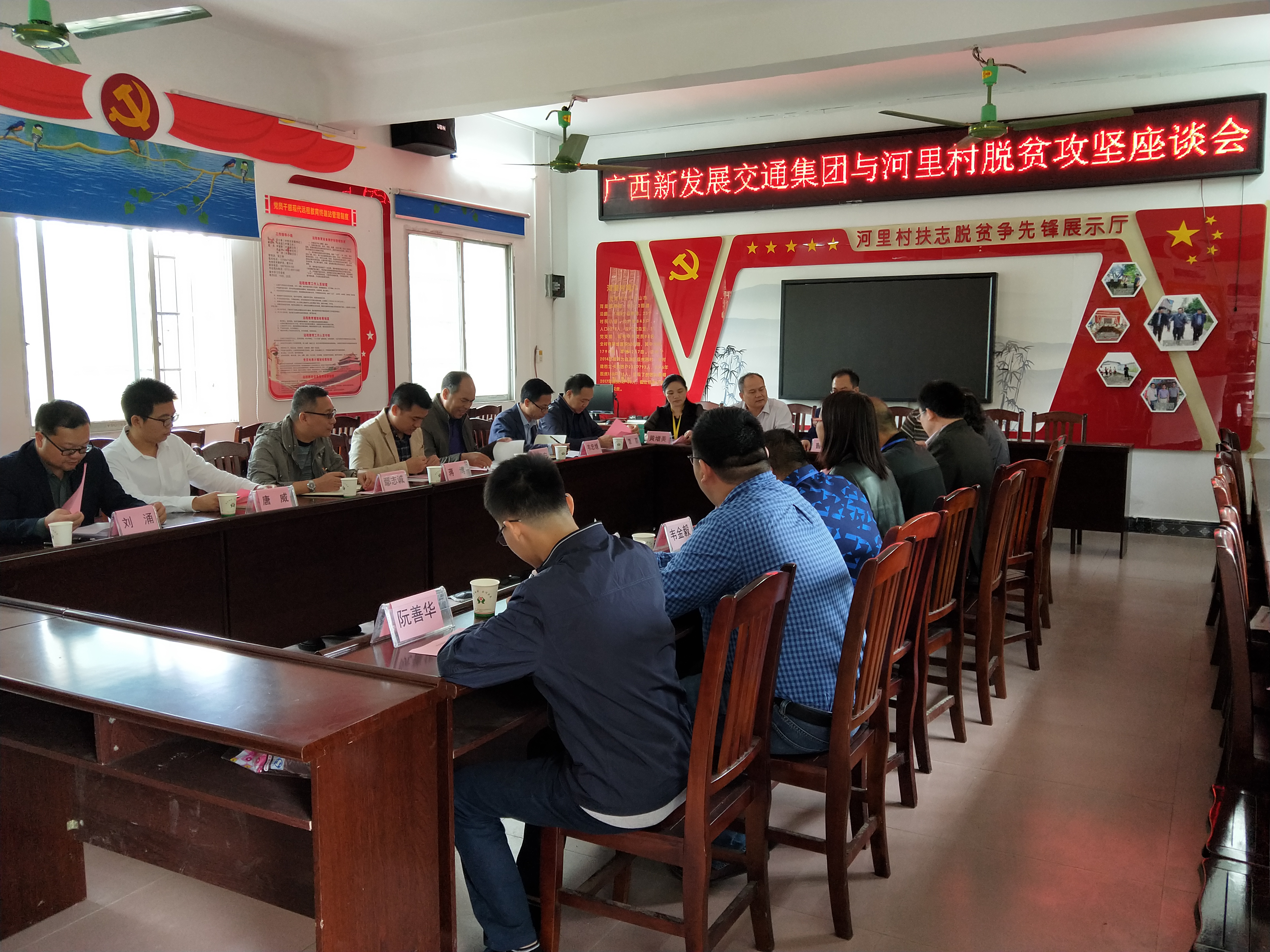 與當(dāng)?shù)卣賳T、扶貧工作隊(duì)員、村民代表舉行座談會(huì),商討河里村扶貧工作問題。