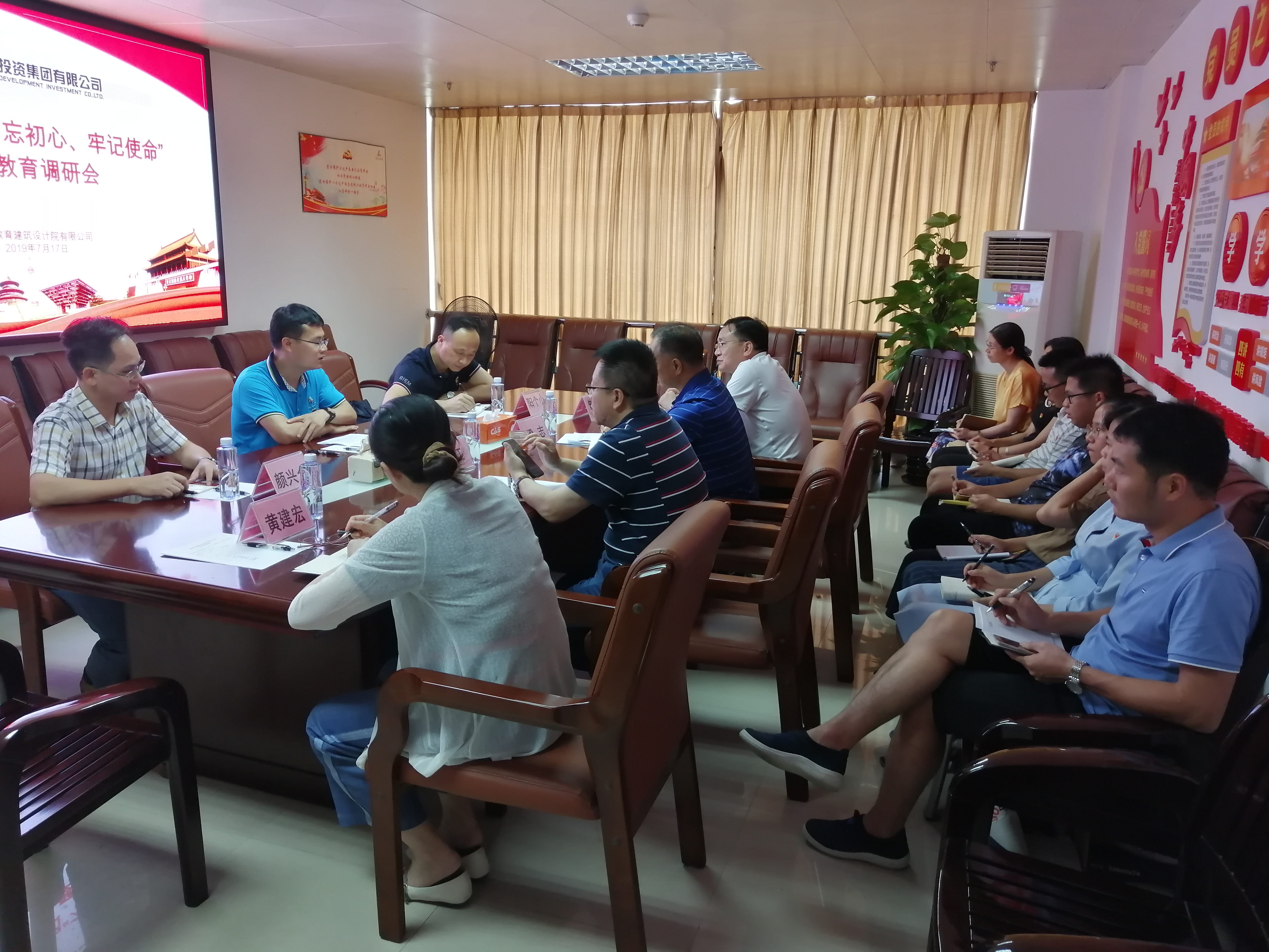 教育建筑設(shè)計(jì)院公司黨支部書記、執(zhí)行董事梁志首先介紹了公司的基本情況和發(fā)展歷程,就公司2018年及2019年上半年經(jīng)營、黨建等工作情況、存在的問題以及今后的發(fā)展思路作匯報(bào)。與會(huì)人員圍繞企業(yè)經(jīng)營管理改革創(chuàng)新和提高企業(yè)市場競爭力等主題發(fā)言討論,提出了公司經(jīng)營管理和面臨市場競爭壓力的困難以及意見建議,調(diào)研組一一記錄并現(xiàn)場給予解答。