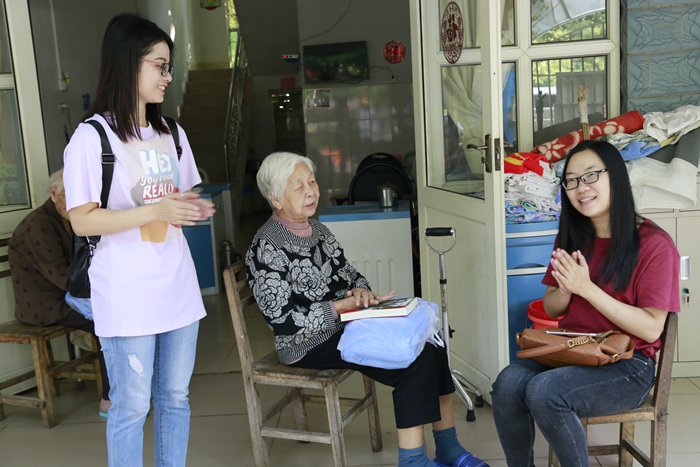 志愿者們圍坐在老人旁邊,詢問他們的生活情況、身體情況,叮囑他們注意保暖、保重身體,傾聽他們的人生故事和叮嚀告誡,并為給他們唱紅歌、讀故事、講新聞,豐富他們的精神生活。老人們對(duì)志愿者的到來感到十分高興,和志愿者一起合唱《團(tuán)結(jié)就是力量》、《歌唱祖國》、《沒有共產(chǎn)黨就沒有新中國》等歌曲。護(hù)老院處處洋溢著歡樂的氣氛,老人們的臉上洋溢著幸福。